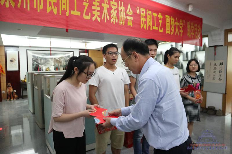 8月23日下午,泉州市民間工藝美術家協會 “民間工藝 圓夢大學”助學活動在我司辦公樓舉辦。公司董事長蔣欽全為協會主席。泉州市委宣傳部副部長兼泉州市文聯主席許旭明、民進…