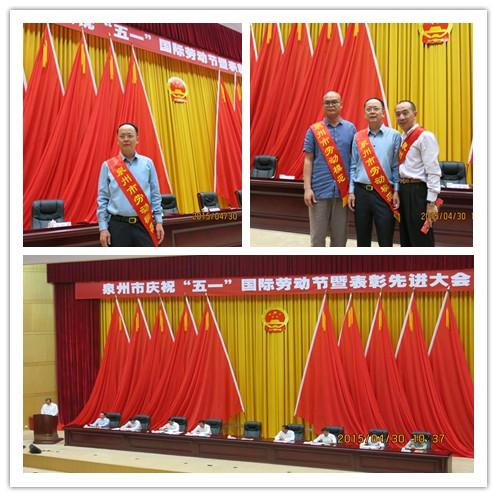2015年4月30日上午,我司蔣欽全董事長參加了由泉州市總工會舉辦的“泉州市慶!拔逡弧眹H勞動節暨表彰先進大會”,并榮獲“2015年泉州市勞動模范”稱號。
