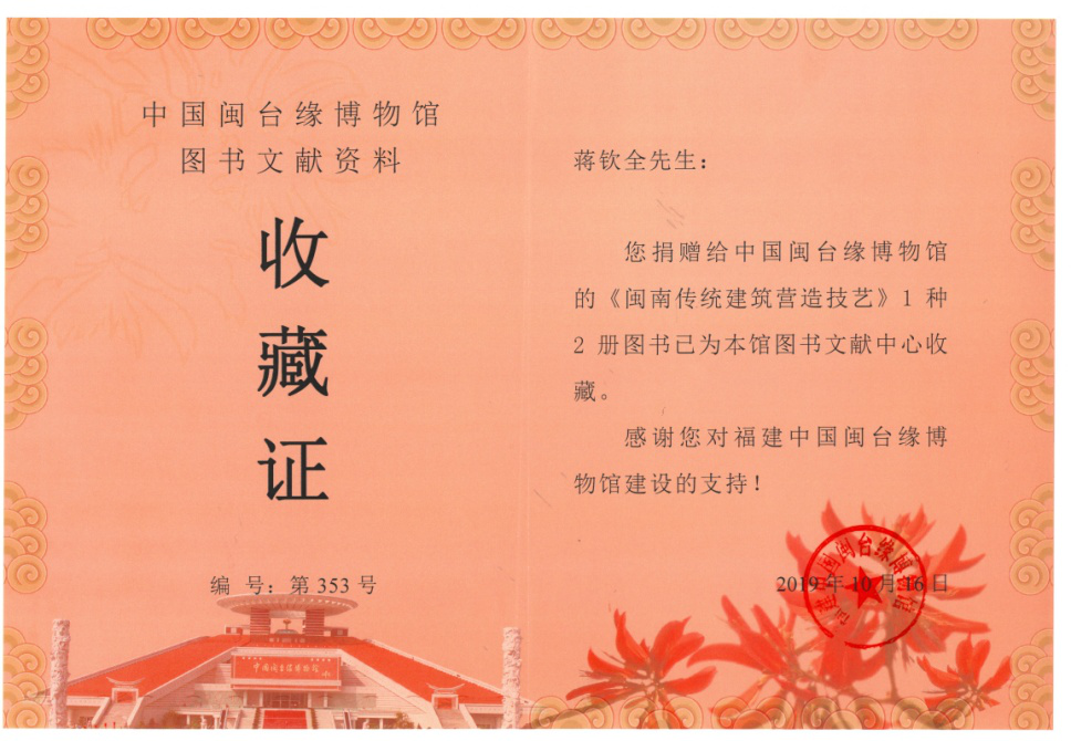 《閩南傳統(tǒng)建筑營造技藝》獲中國閩臺緣博物館收藏